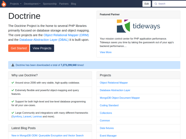 The Doctrine Project is an open-source PHP project that is home to home to several PHP libraries primarily focused on database storage and object mapping. The core projects are the Object Relational Mapper (ORM) and the Database Abstraction Layer (DBAL) it is built upon.